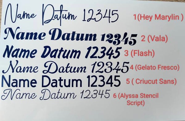 - Schriftfarbe nach Wunsch (nach Absprache)